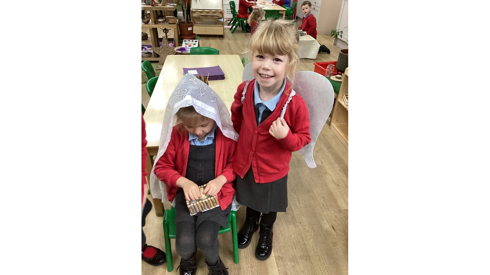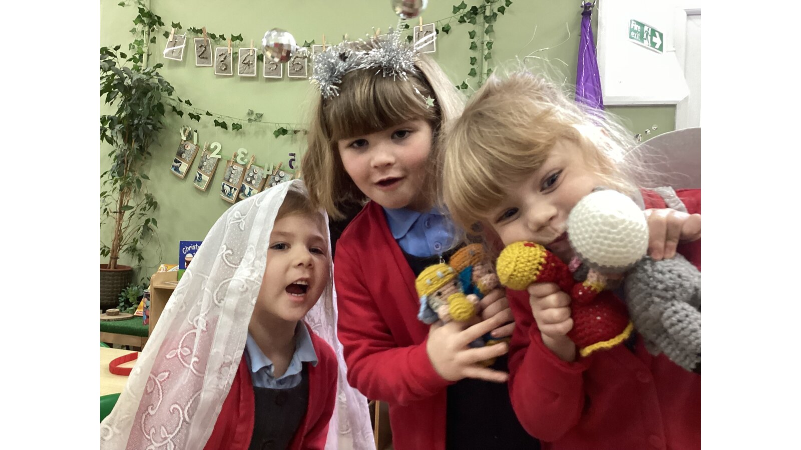 Another lovely visit to the library for our children in Robins. The children thoroughly enjoy their story session at the library, before browsing, choosing and of course stamping their own book to bring back to school. Children then vote each morning for the story they would like Miss Pryke to read that day. Some adorable pictures too of the Nativity story being rehearsed in classroom; retelling through role play and dress up. Just wonderful!