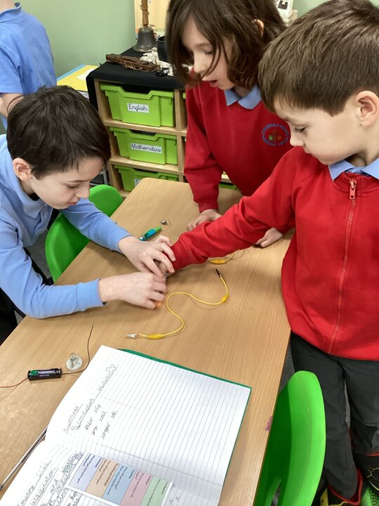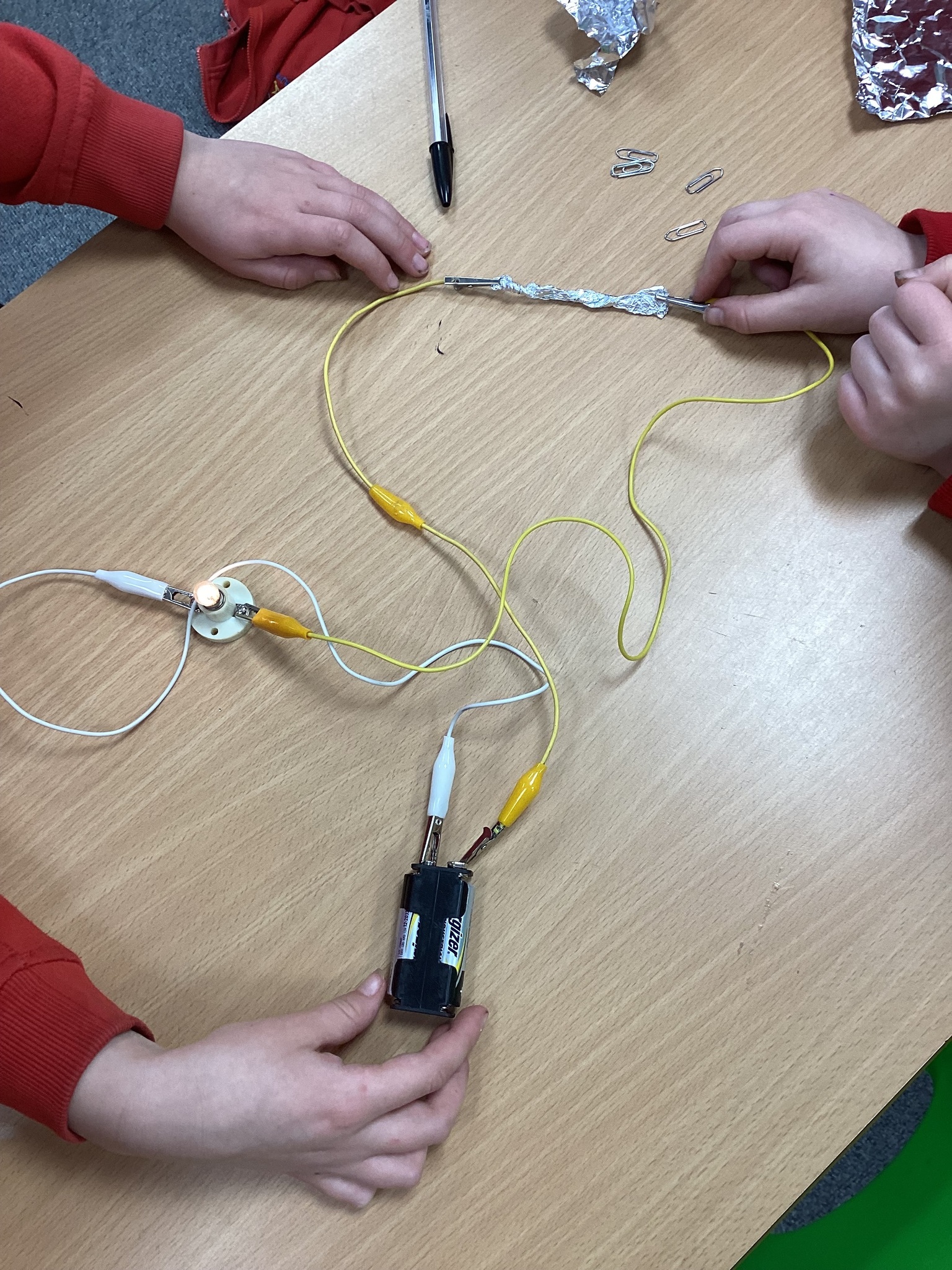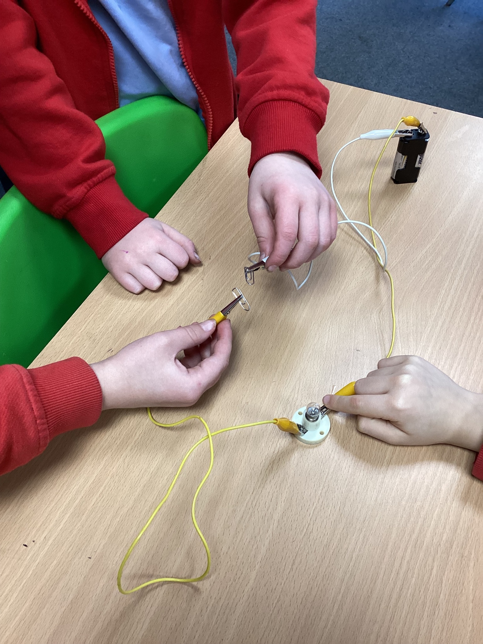 This week, the Swifts have been learning about conductors and insulators. We activated our knowledge by drawing a simple circuit and discussing open and closed switches. We practiced creating a simple switch out of paper clips and tin foil and could now believe how simple it was to stop an electrical flow by simply opening the circuit! We progressed to looking at other materials that could allow an electrical flow, we learnt these were electrical conductors. We discuss how these materials were metals and metal allows electrical atoms to flow freely through the material.