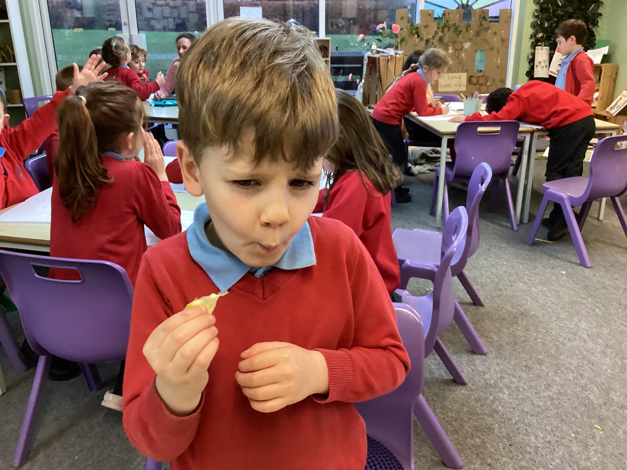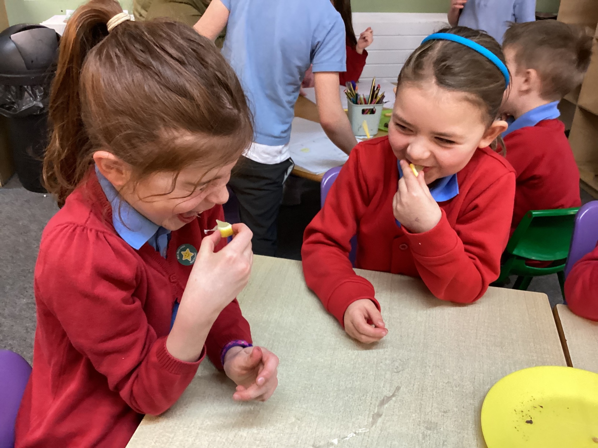 This week in science we were learning about the sense of taste and smell. We tasted foods from the 5 basic tastes - sweet, sour, savoury, salty and bitter and decided which taste they were. Some fabulous reactions to these foods Larks!