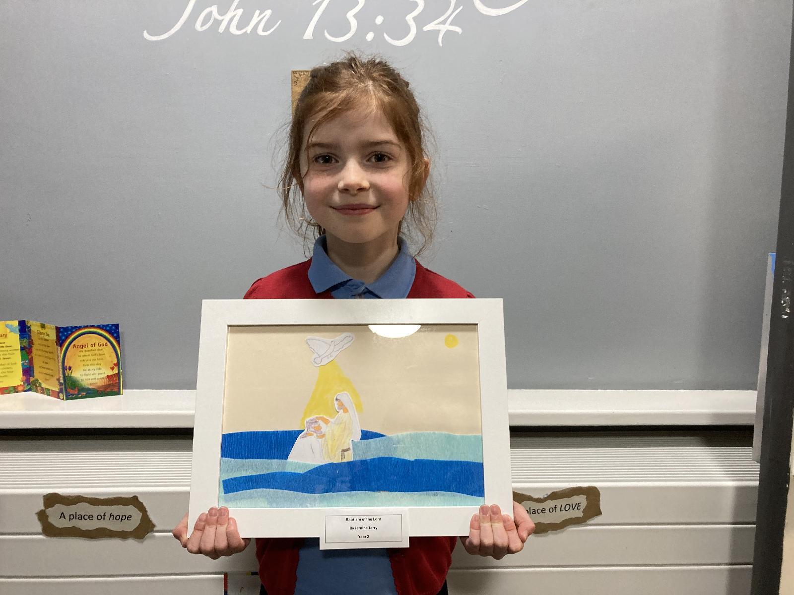 'Baptism of the Lord' on the wall in school for everybody to see and admire! Well done.